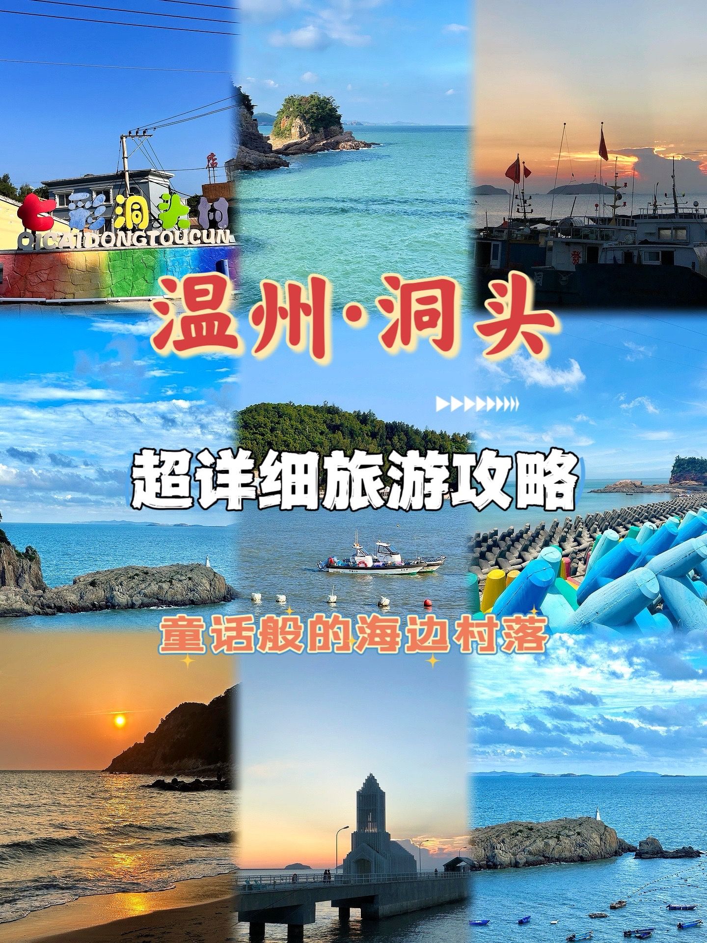 七彩洞头村:是一个挨着小山坡而建的渔村,里面有一条游览步道,有很多民宿小店,也有原住民,很漂亮,沿着环海公路那一面都是海鲜排挡;