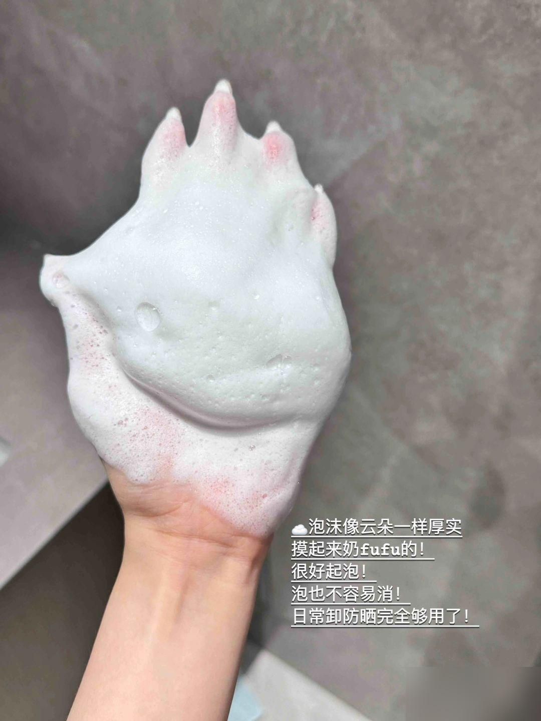在手心加水随便搓一搓,泡沫就非常绵密,上脸软绵绵的