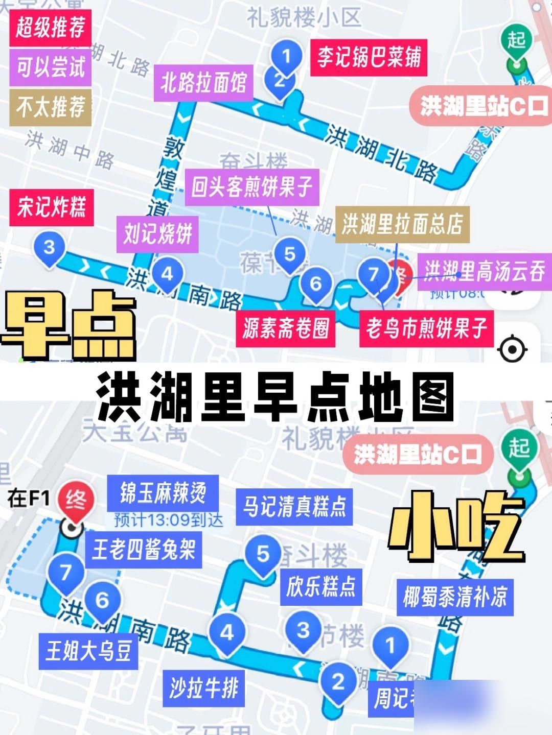 时间:两边大多是6:00-10:30;洪湖里的煎饼果子、拉面、烧饼全天都有