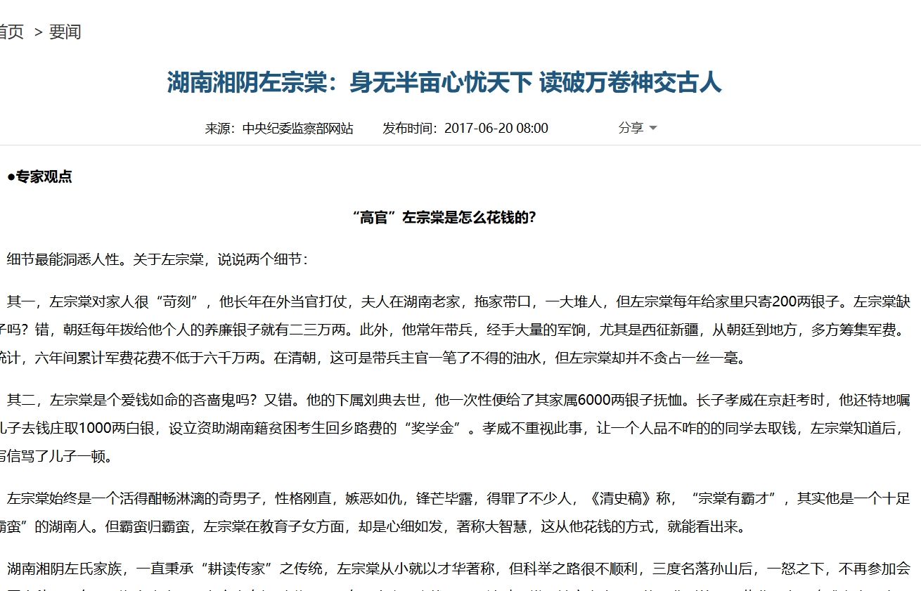 信源:<湖南湘阴左宗棠:身无半亩心忧天下 读破万卷神交古人>中央纪委监察部网站 2017-06-20