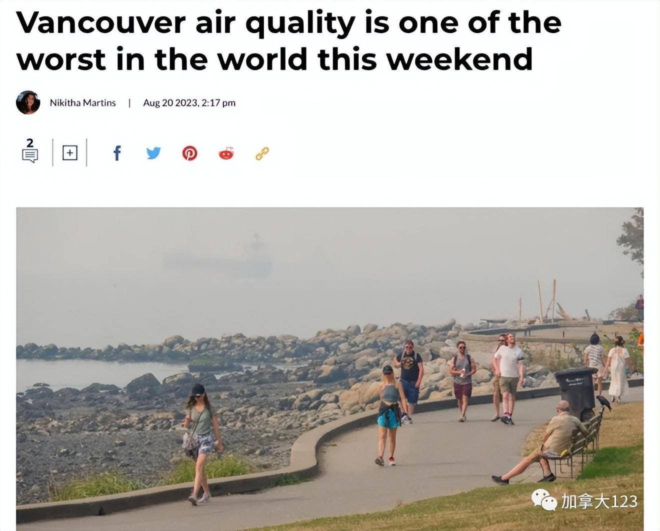 受山火影响,大温哥华地区整个周末雾霾笼罩,使得温哥华一夜之间成为全球空气污染最严重的主要城市之一。