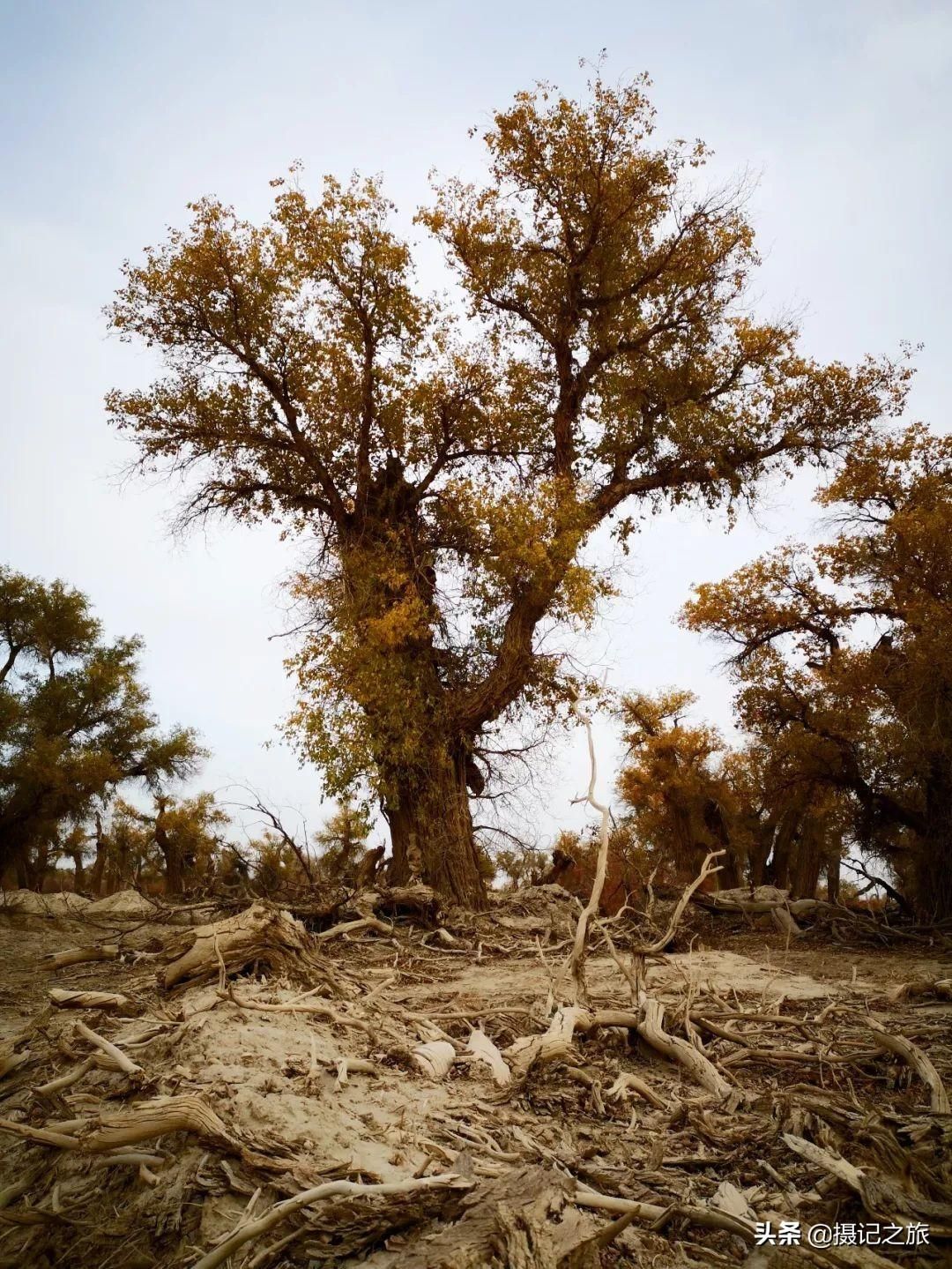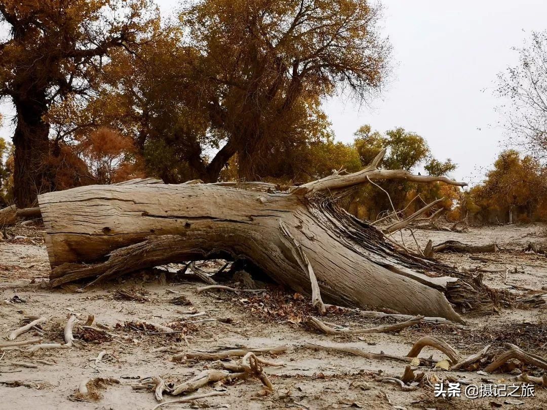 地上的枯木与枝繁叶茂的胡杨林,这种生与死的对比感,真的是别有一番风味。