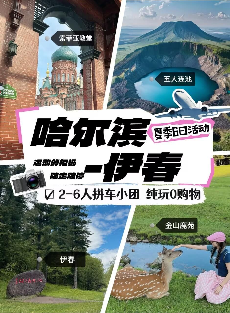 这样的6天5晚[哈尔滨+五大连池+伊春]游,比起传统旅行团,我们的自由度更高,也不强制消费,但该有的安全保障和统筹规划一样也不会少不用等排期,凑三五个朋友,直接就能“说走就走”‼自己一个人也能跟同龄的伙伴拼团,不用担心尴尬~