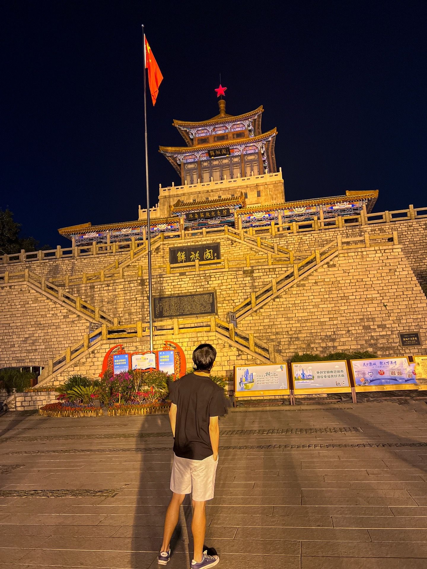 晚上的解放阁很美,灯光打在墙面上,拍照起来很好看