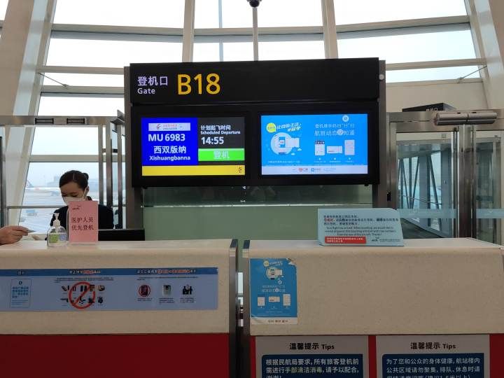 东航杭州直飞西双版纳航班起飞和降落都是在杭州萧山国际机场T3航站楼。东航浙江分公司杭州基地的地服员分别在T3航站楼出发层11、13号门,迎接MU6983航班的旅客,全程引导旅客进行乘机手续办理,东航值机柜台固定在G岛2至14号柜台。其中G5-G7为经济舱旅客办理柜台,G2、G3为贵宾办理柜台,晚到的旅客可以直接到G4柜台迅速办理值机手续,G8为团体旅客办理柜台,G9-14为自助值机柜台,满足旅客想要自助办理登机牌、行李托运的需求。