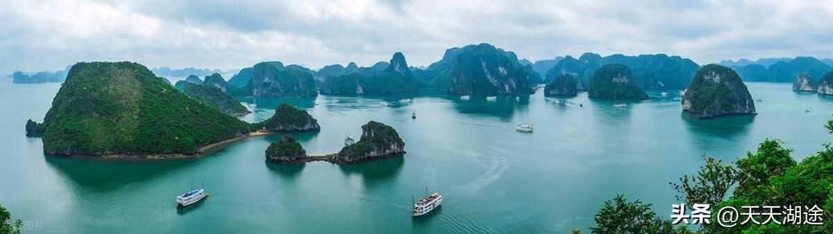 下龙湾:位于越南东北部,以其壮丽的石灰岩山峰和清澈的海水而闻名,是世界著名的自然遗产之一。