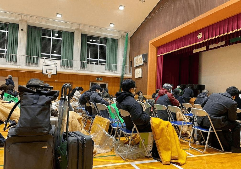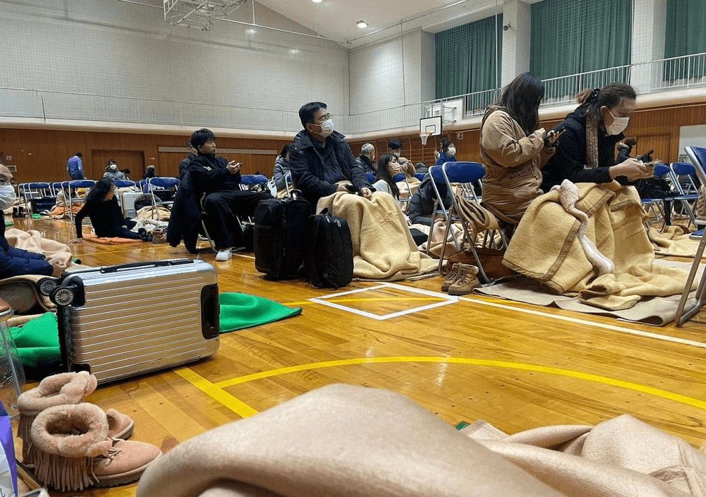 大家按照广播的指示,带着自己的东西来到了附近的小山坡上,等待进一步的消息。后来,他们被安排在了附近的消防署、民宿和小学体育馆等地临时避难。谭小姐和约200名乘客一起在小学体育馆的临时避难所呆了一夜,领了一些有限的食物,包括饭团、水和毛毯等。