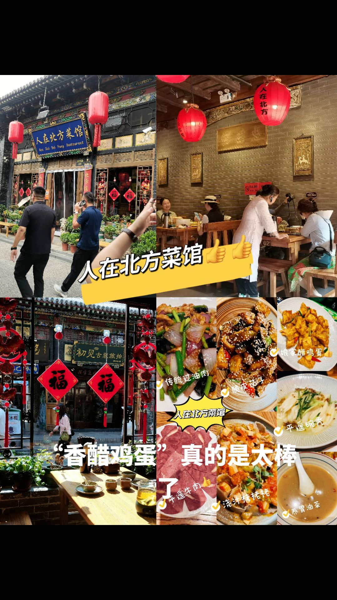 ·行程推荐必吃人在北方菜馆:古城里最好吃的一家晋菜餐馆,正餐首选他家,不论菜品、环境还是服务都没的问题。"香醋鸡蛋"真的是太棒了,"平遥牛肉"入口即化的小姐姐服务超好,真的好好吃而且服务态度很好。古城里边第一位都给我来吃,而且服务的小姐姐会根据人数来推荐,是在景区里没有体验过得。总之来古城必吃榜。