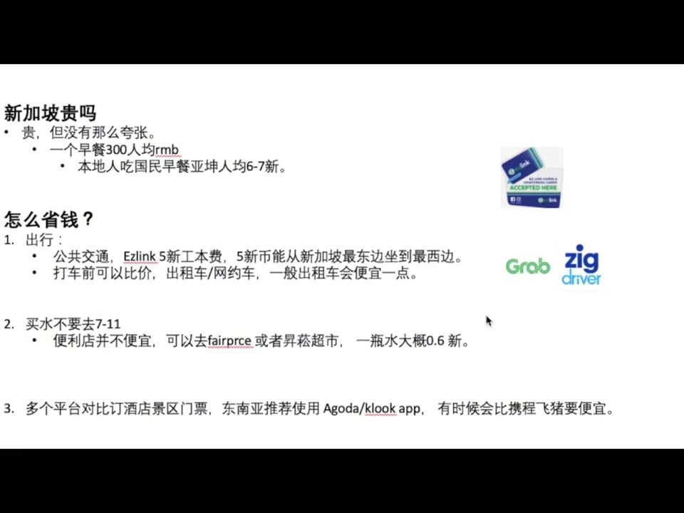 ·第一个是关于出行方面。在新加坡出行比较推荐大家,如果不是拖家带口可以尽量尝试使用公共交通。在新加坡地铁站只需要花五块钱就可以办一张e z link,e z link是新加坡的地铁和公交卡,就算从新加坡最东边坐到新加坡最西边可能也花不超过五块钱。