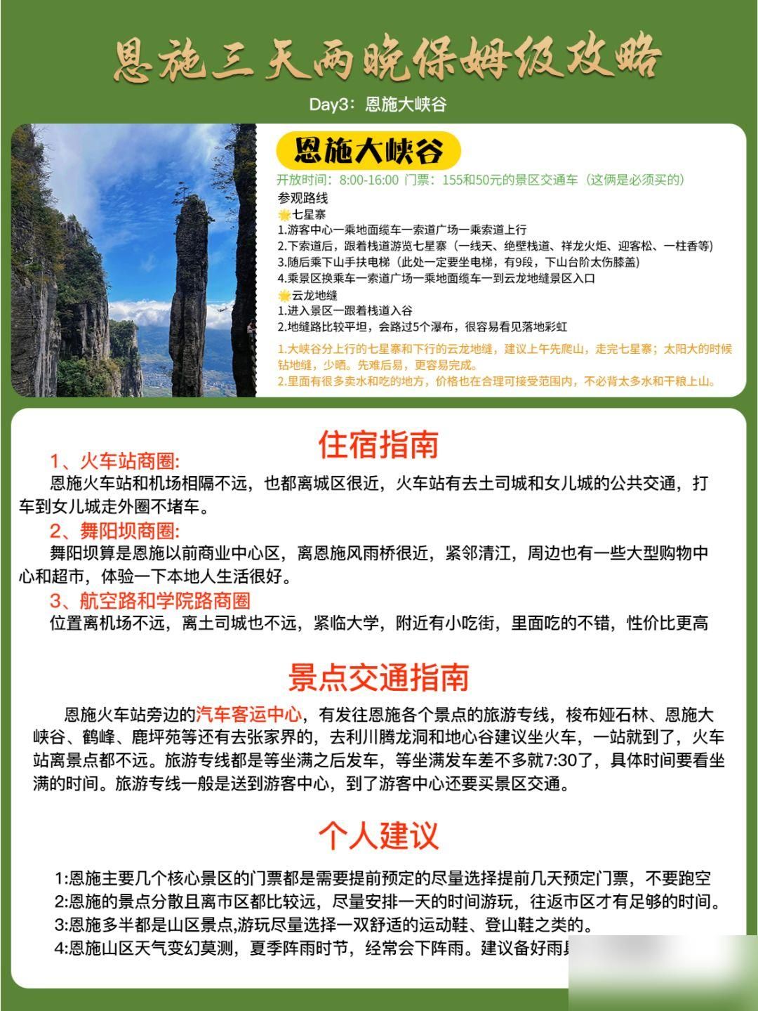 私藏恩施旅游三天路线,懒人超全攻略!