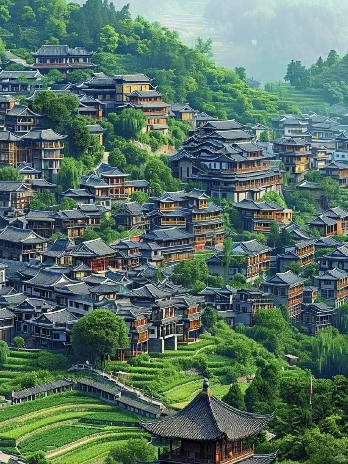 我们首站将抵达西江千户苗寨,这是中国乃至全世界最大的苗族聚居村寨。在秀秀的引领下,我们将走进这个充满神秘色彩的古老村落。梯田、吊脚楼、风雨桥,每一处都是苗族文化的生动展现。而到了晚上,苗寨的夜景更是如梦如幻,让人流连忘返。