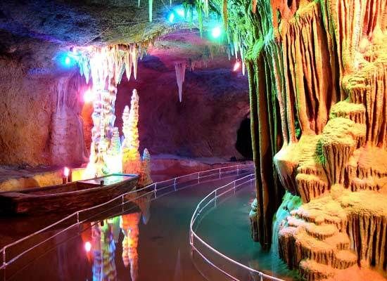 蒙阴地下银河旅游景区位于山东蒙阴县城西北6公里处,南接素有天然氧吧之称的蒙山,东邻红色旅游圣地--英雄孟良崮!旁傍天月湖,隐于长山之下,东、西两座玉皇山相拥,还有自古有名的“金盆底”地貌。登上长山山顶,眼前群峰耸峙,充分体现了长山脚下万亩桃林。