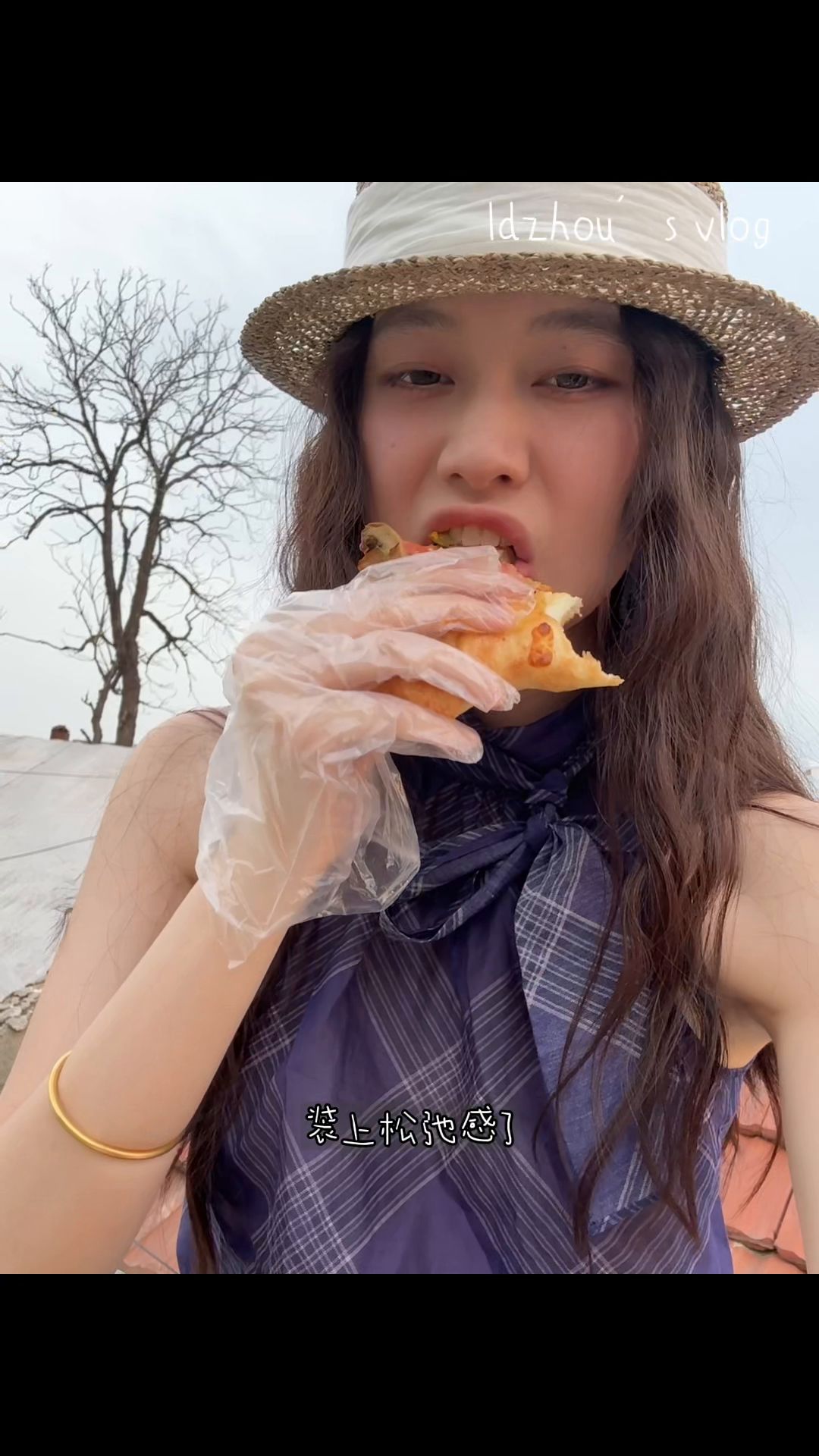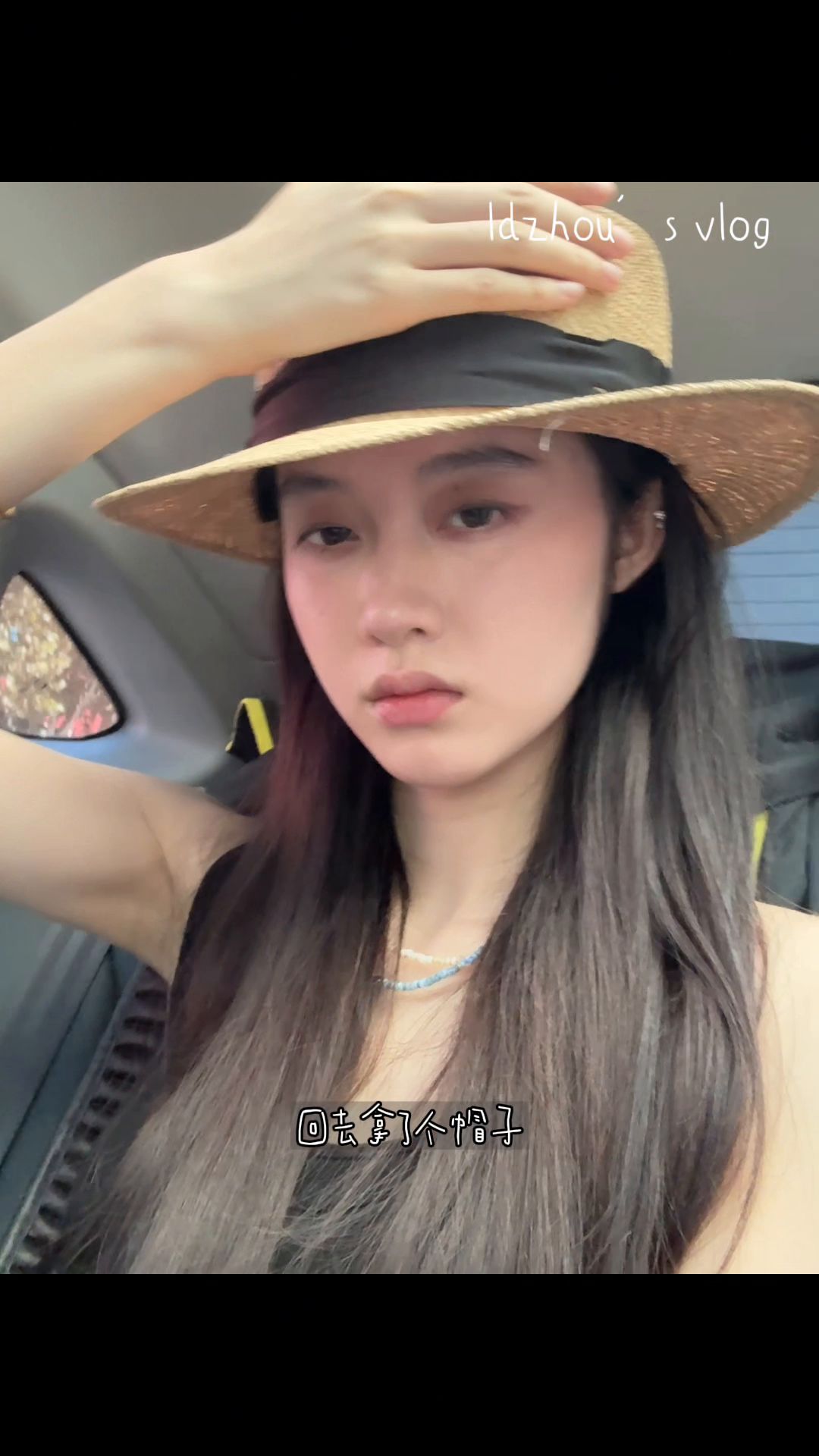 今天天气不错,阳光很好,很大的太阳,我不想洗头,回去拿个帽子,因为我感觉这帽子黑色带子跟我这一身黑还挺搭。给你们看今天天气,就是车上那个天窗,你们看阳光很好的时候,随便拍拍是不是都挺好看的。
