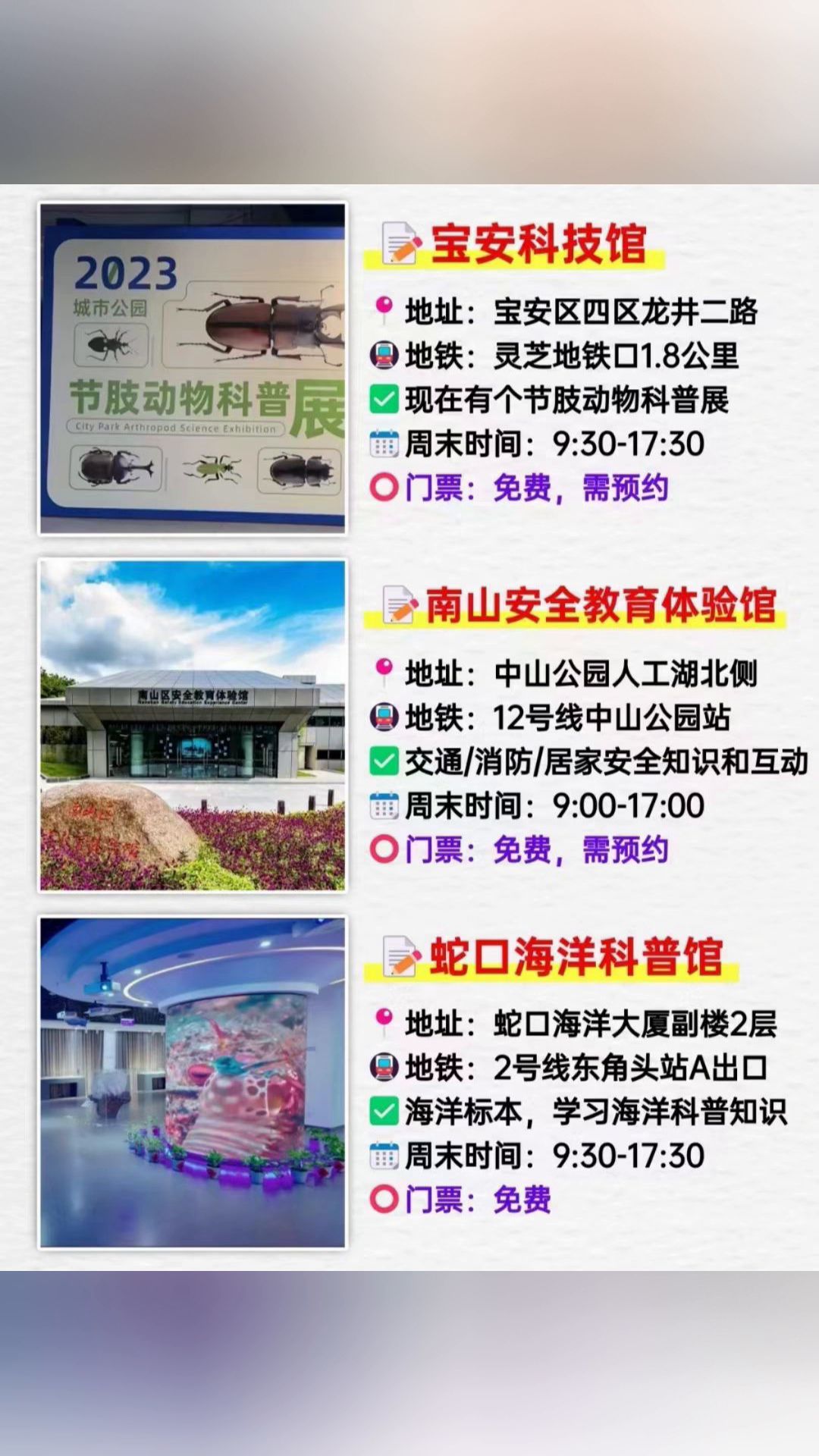 2. 地址:宝安区四区龙井二路。地铁:灵芝地铁口 1.8 公里。现在有个节肢动物科普展,周末时间:9:00-17:00。