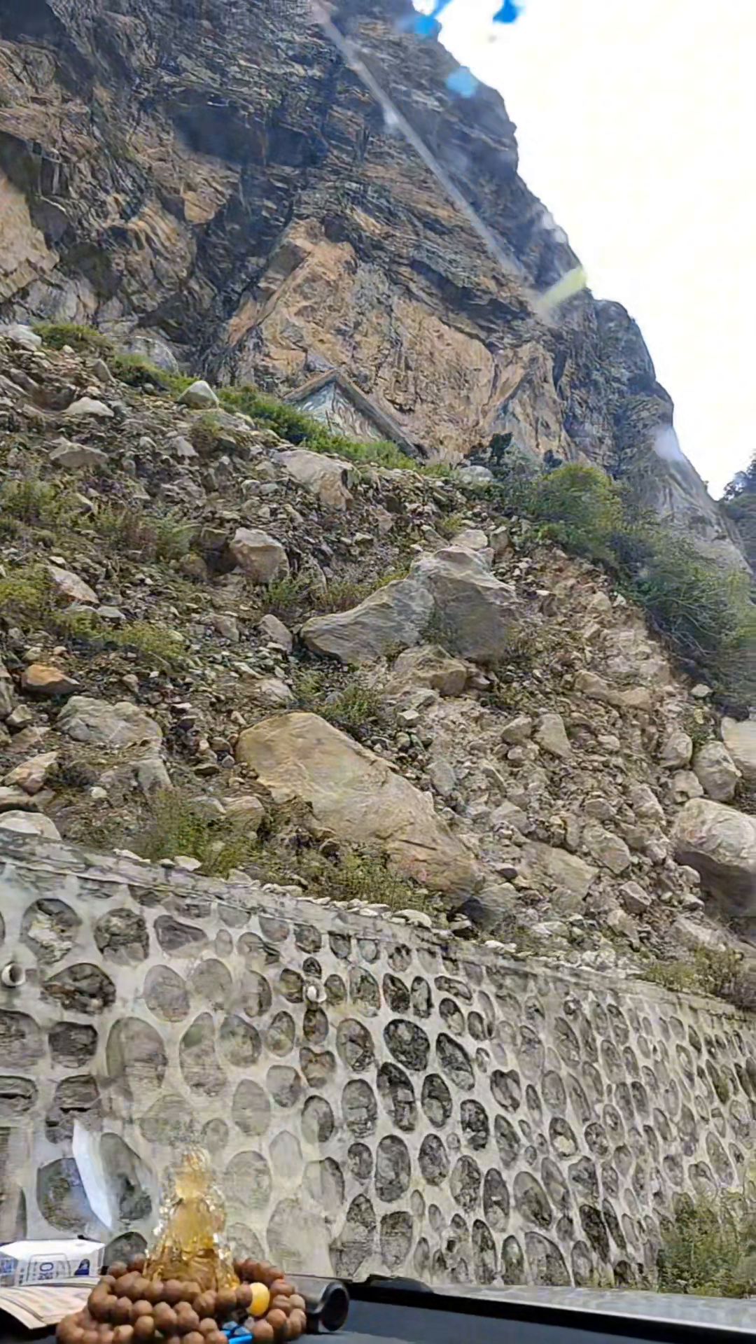这个沟我的感觉得长达五十公里,具体多少我没有查,因为我开来了之后我现在到这里来只能原路返回。我现在在原路返回这里的人很智慧,把石头垒到这里能防止山体滑坡。在这个高山巨石之上人觉得太渺小了,犹如小蚂蚁,一路都是这样美丽的景色。