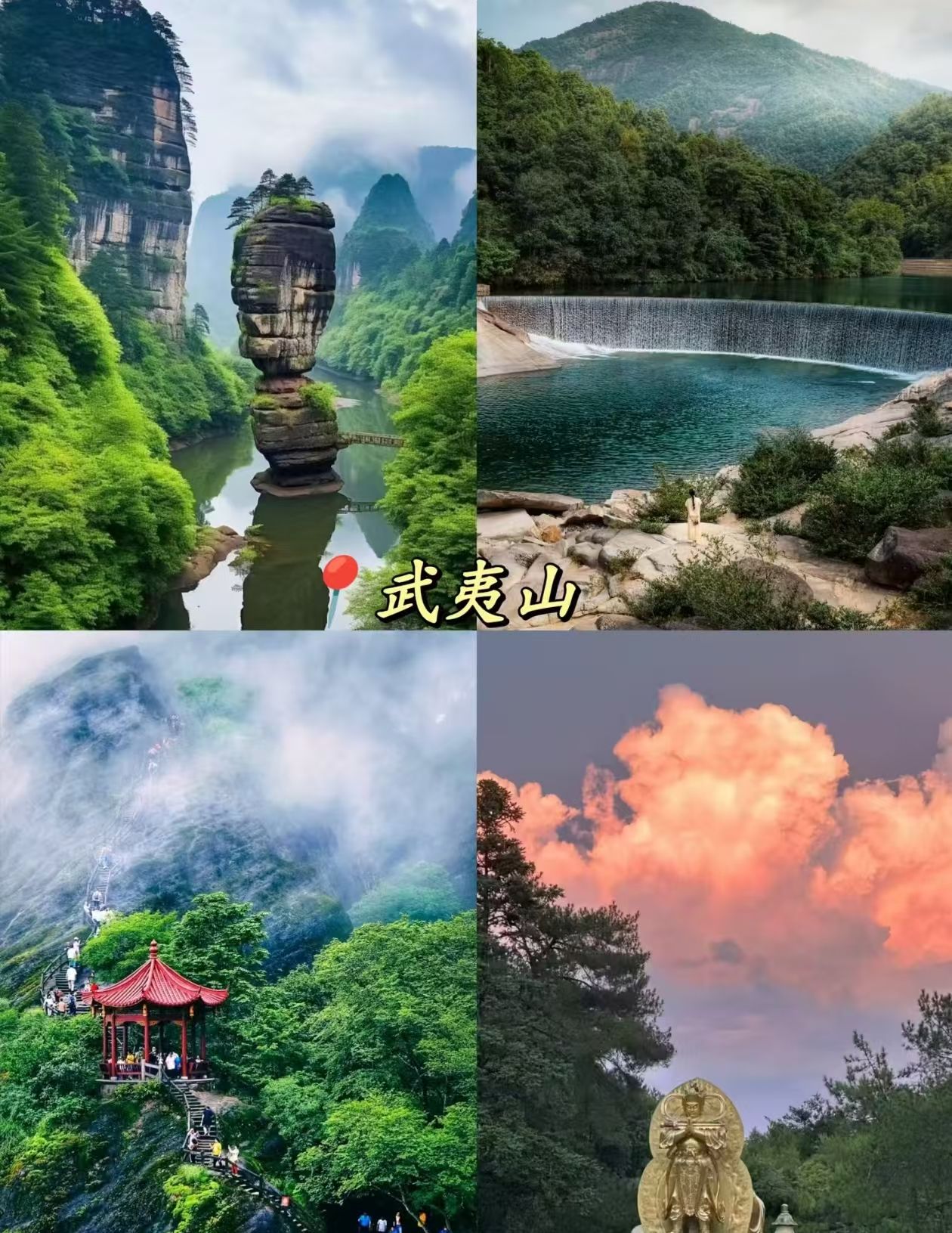 武夷山(武夷山市):世界自然与文化双重遗产,山峰秀美,溪流清澈,生态丰富