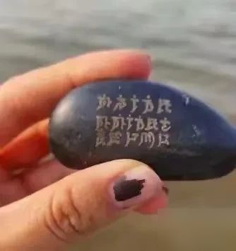 带着一颗激动的心,女子小心翼翼地捡起这块特殊的石头。仔细端详之下,女子发现它的表面布满了奇怪的纹路,像是某种文字,又像是天然形成的花纹。