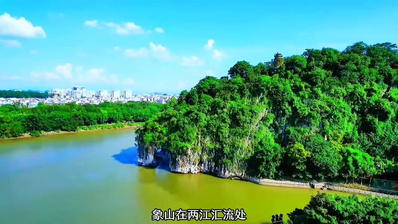 ·秀峰区:两江四湖·象山。两江四湖水系贯通全城,坐游船夜游桂林已成为旅游名片。日月双塔为最代表景点,象山在两江汇流处,江水在鼻腿间穿洞而过,构成"象山水月"奇景,为桂林山水的象征。