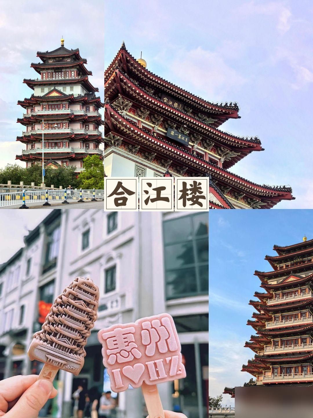 特色:朝京门是惠州古城墙的一部分,历史悠久,见证了惠州的变迁。合江楼则是一个结合了历史与现代建筑风格的观光地,从这里可以俯瞰整个城市及两江交汇的美景