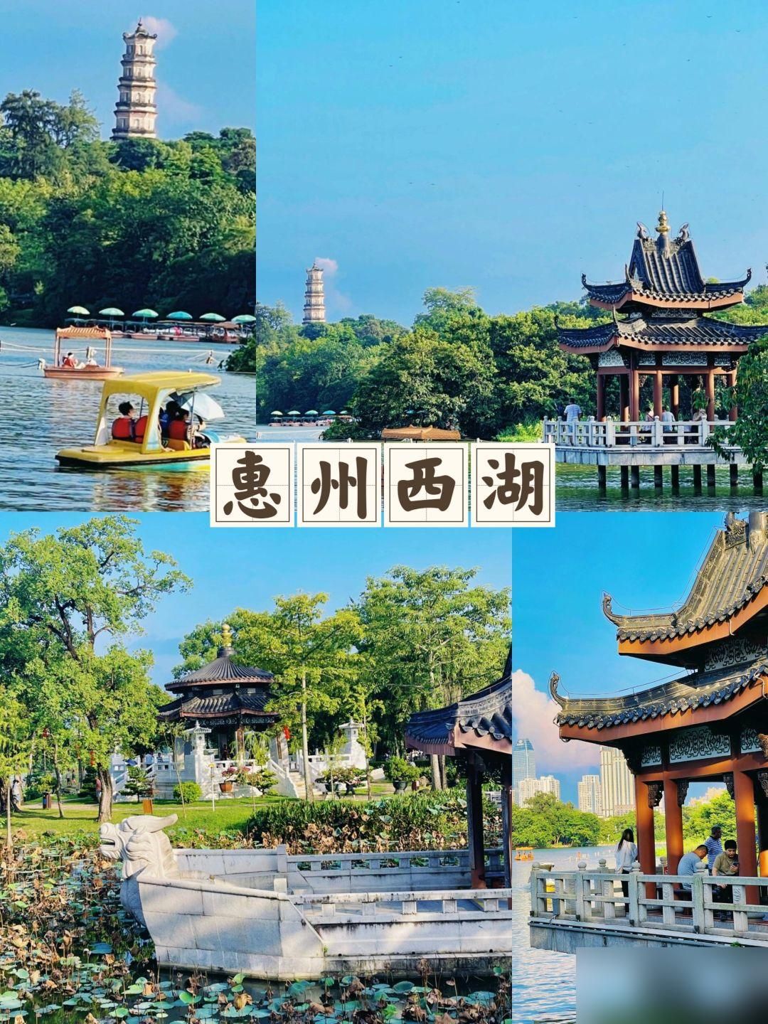 特色:惠州西湖以其秀美的湖光山色著称,是游客体验岭南水乡风情的好去处。湖畔的柳树轻摇,湖中的荷花盛开,构成了一幅动人的画卷