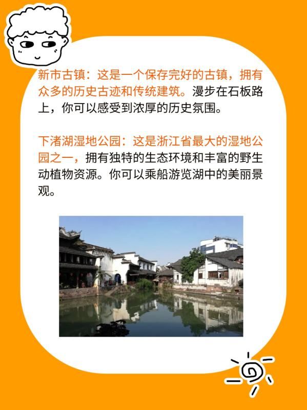 下渚湖湿地公园:这是浙江省最大的湿地公园之一,拥有独特的生态环境和丰富的野生动植物资源。你可以乘船游览湖中的美丽景观。
