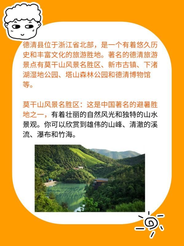 德清县位于浙江省北部,是一个充满自然美景和历史文化的地方。以上这些地方都是德清旅游的精华所在,无论是喜欢自然风光还是历史文化,都能在这里找到适合自己的旅游项目。每年,无数游客慕名而来,亲身体验德清的独特魅力。