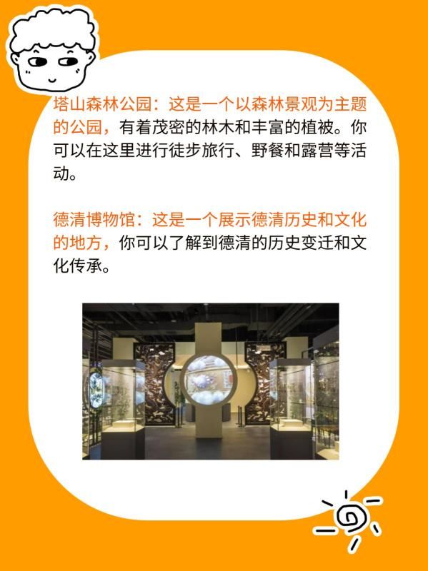 德清博物馆:这是一个展示德清历史和文化的地方,你可以了解到德清的历史变迁和文化传承。