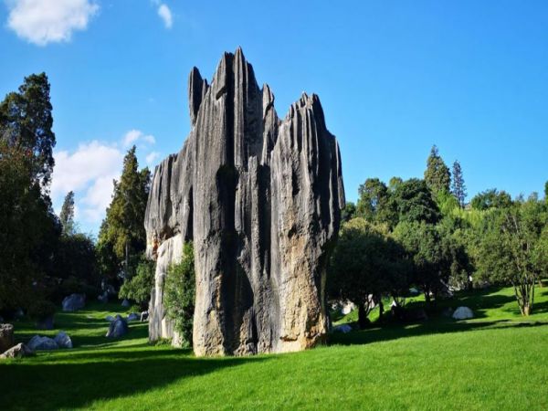 石林位于云南省会昆明东南郊80余公里处,在中国960万平方公里的地上众多的山川名胜景区中,云南石林以其雄、奇、险、幽的地貌风光独树一帜。在世界溶岩地貌风光中。中国云南石林又以其面积广,岩柱高,小尺度造型见长,一定范围内景点集中而独占鳌头。