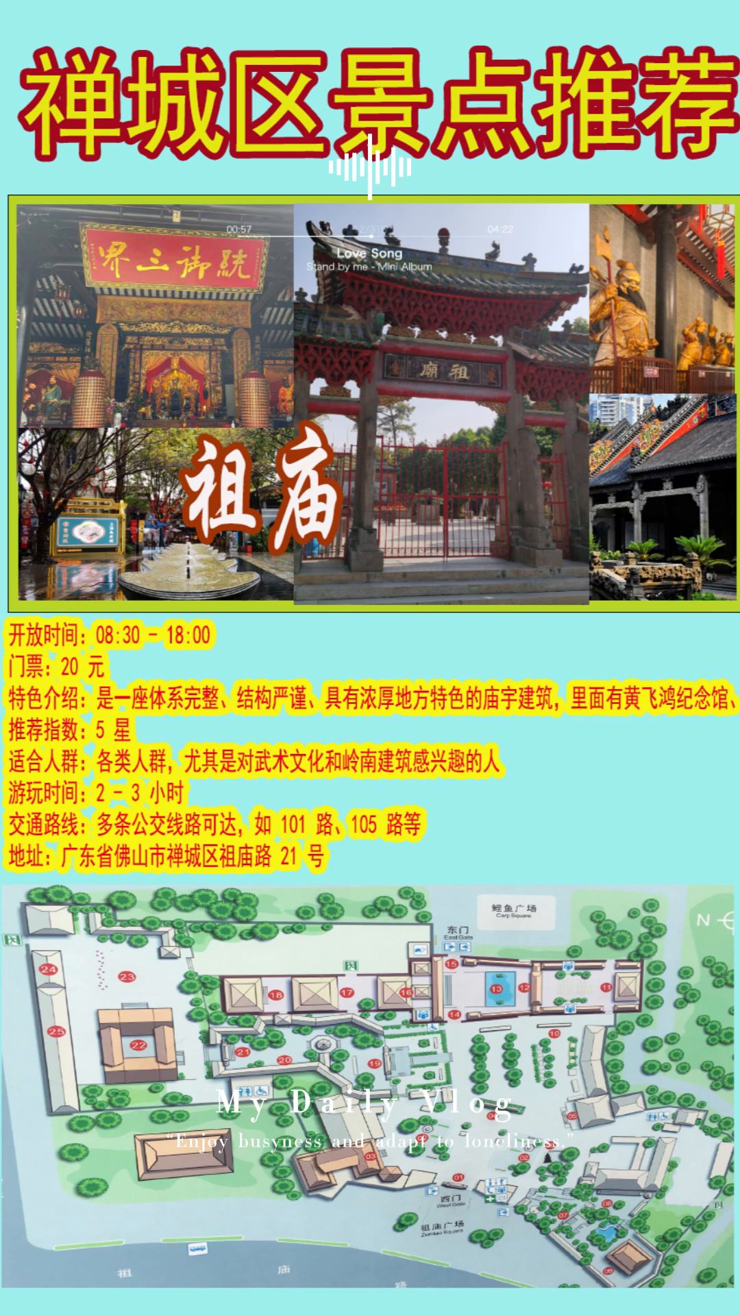 1. 岭南天地:特色介绍为具有中华第一牌坊的美誉,是一个集旅游、休闲、娱乐为一体的现代化旅游景区。地址在广东省佛山市禅城区祖庙东华里中心地段。