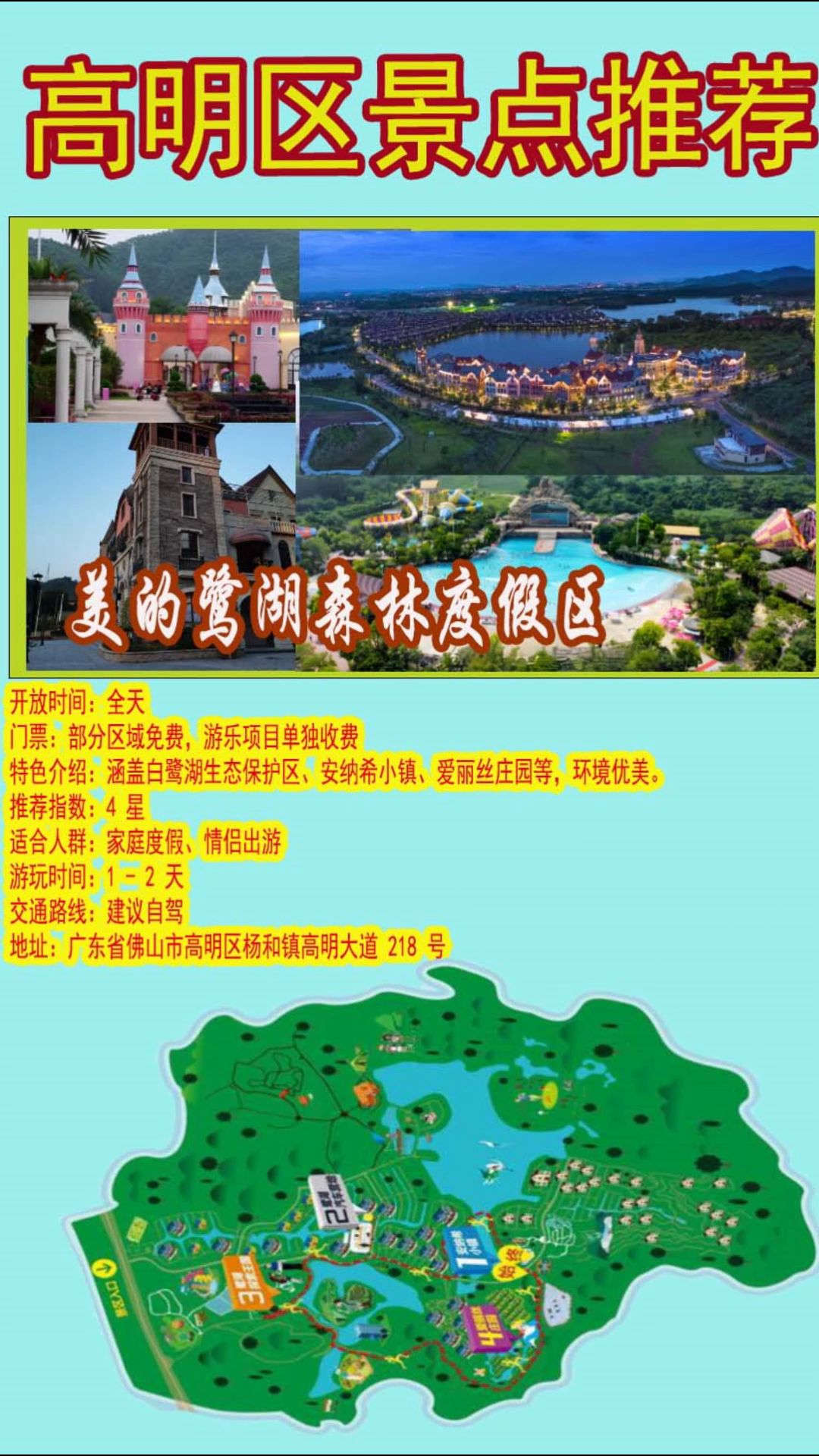 4. 涵盖白鹭湖保护区、安纳希小镇、爱丽丝庄园等,环境优美。地址在广东省佛山市高明区荷城街道西安洗村。