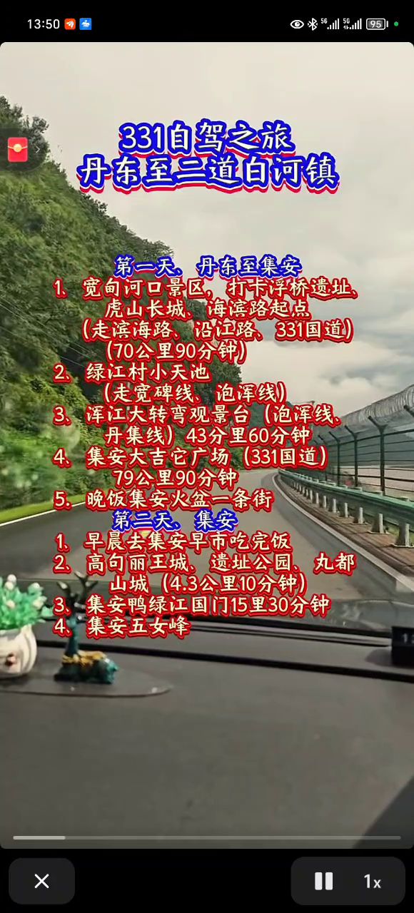 ·第一天,丹东至集安。宽句河口景区打卡浮桥遗址(50公里90分钟)。虎山长城、海滨路起点。