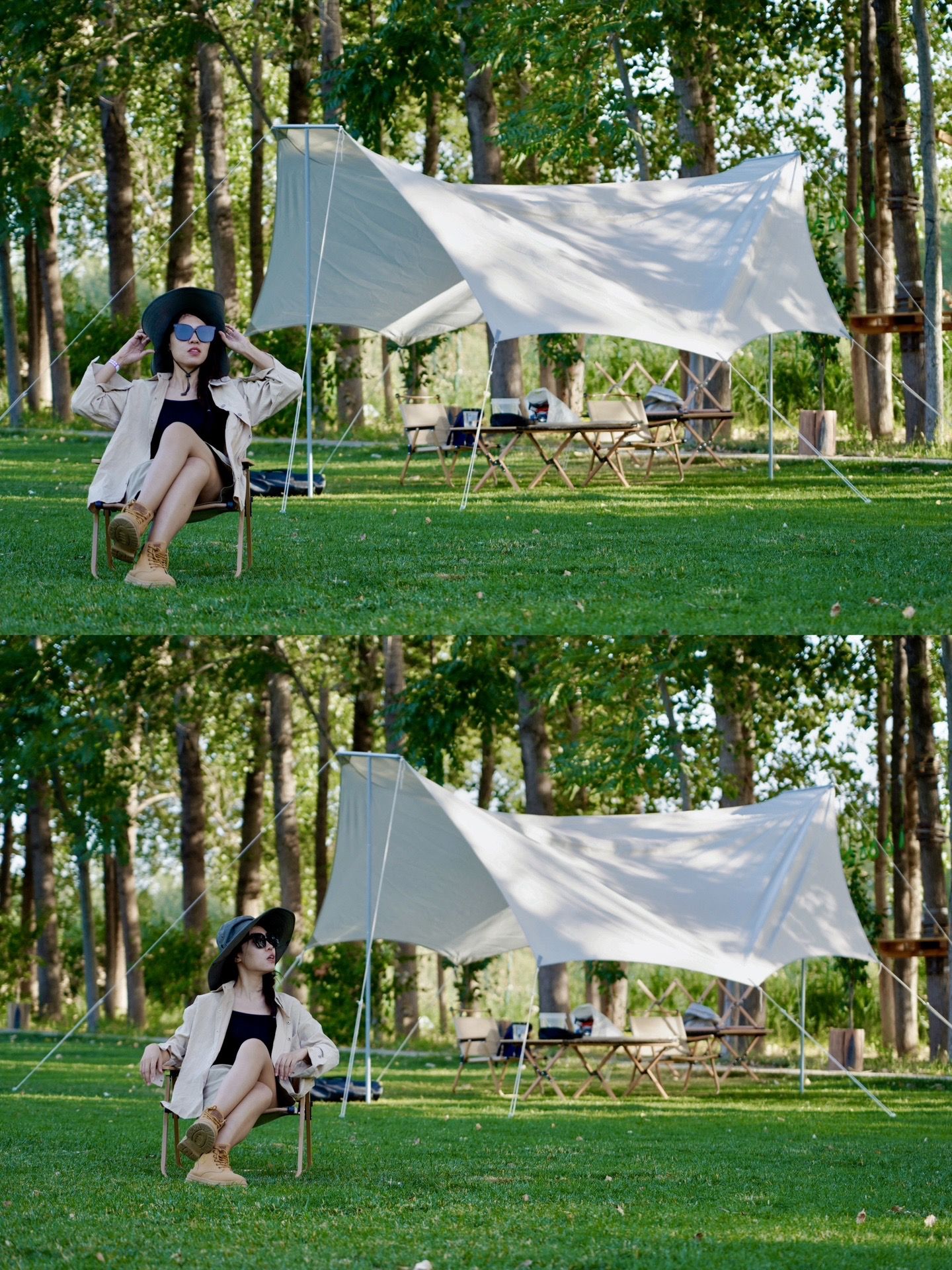 这里设施齐全,天幕和桌椅都是现成的,不用你费心准备。草地维护得非常好,走在上面软绵绵的,连飞虫都很少见,真是让人心情大好!坐在天幕下,享受着微风拂面,和朋友们一起聊天吹牛,简直不要太惬意!