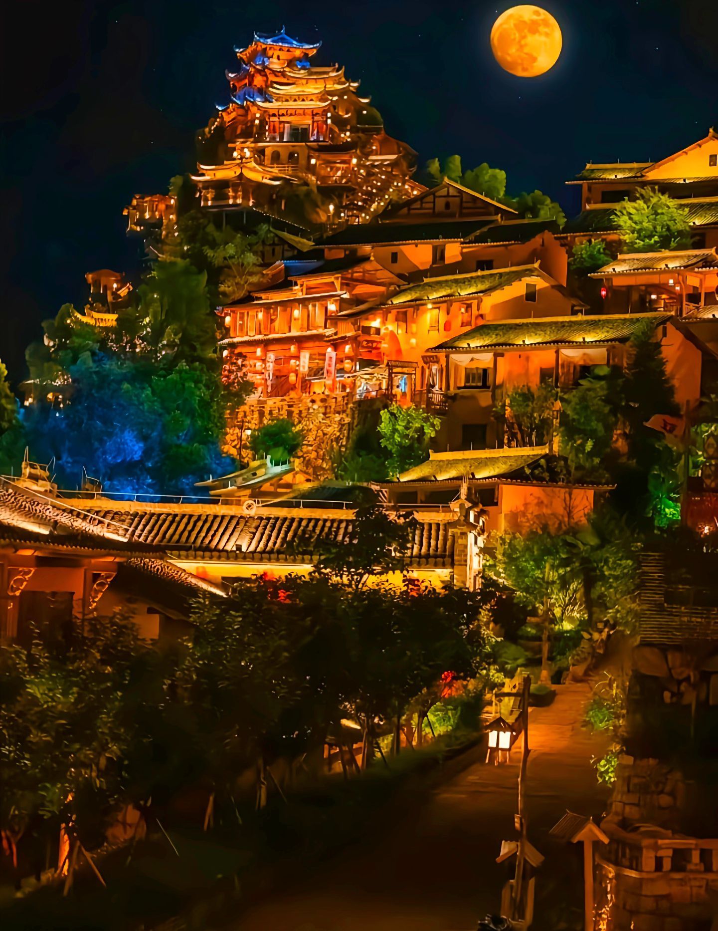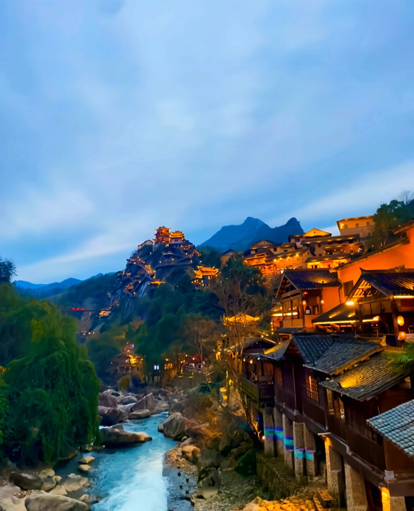 青云桥三口瀑彩虹瀑白鹤桥美食街揽月桥白鹤楼悬崖峭壁玻璃栈道。