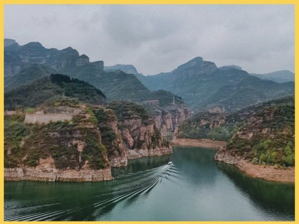 京娘湖位于邯郸武安市西北侧,距离邯郸市区的车程近70公里,是一处面积宽广的山间水库。水库湖水碧绿,周围环绕着太行山典型的赤红崖壁地貌,景色非常壮观,因为高峡平湖的壮观风景也被称为“太行三峡”。游客来此可以乘船游湖,也可以登上湖边的山岭观景拍照。