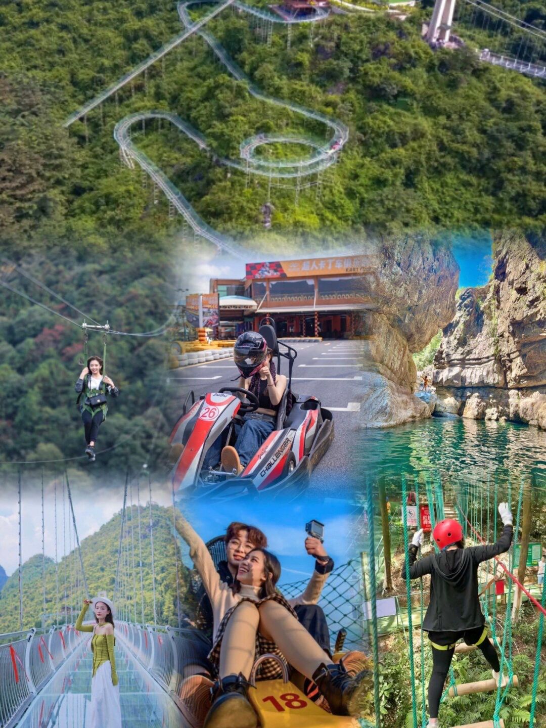 14:00-18:00游玩【溶洞+玻璃桥+天鹅湖游船+卡丁车+飞车+飞索+丛林穿越】