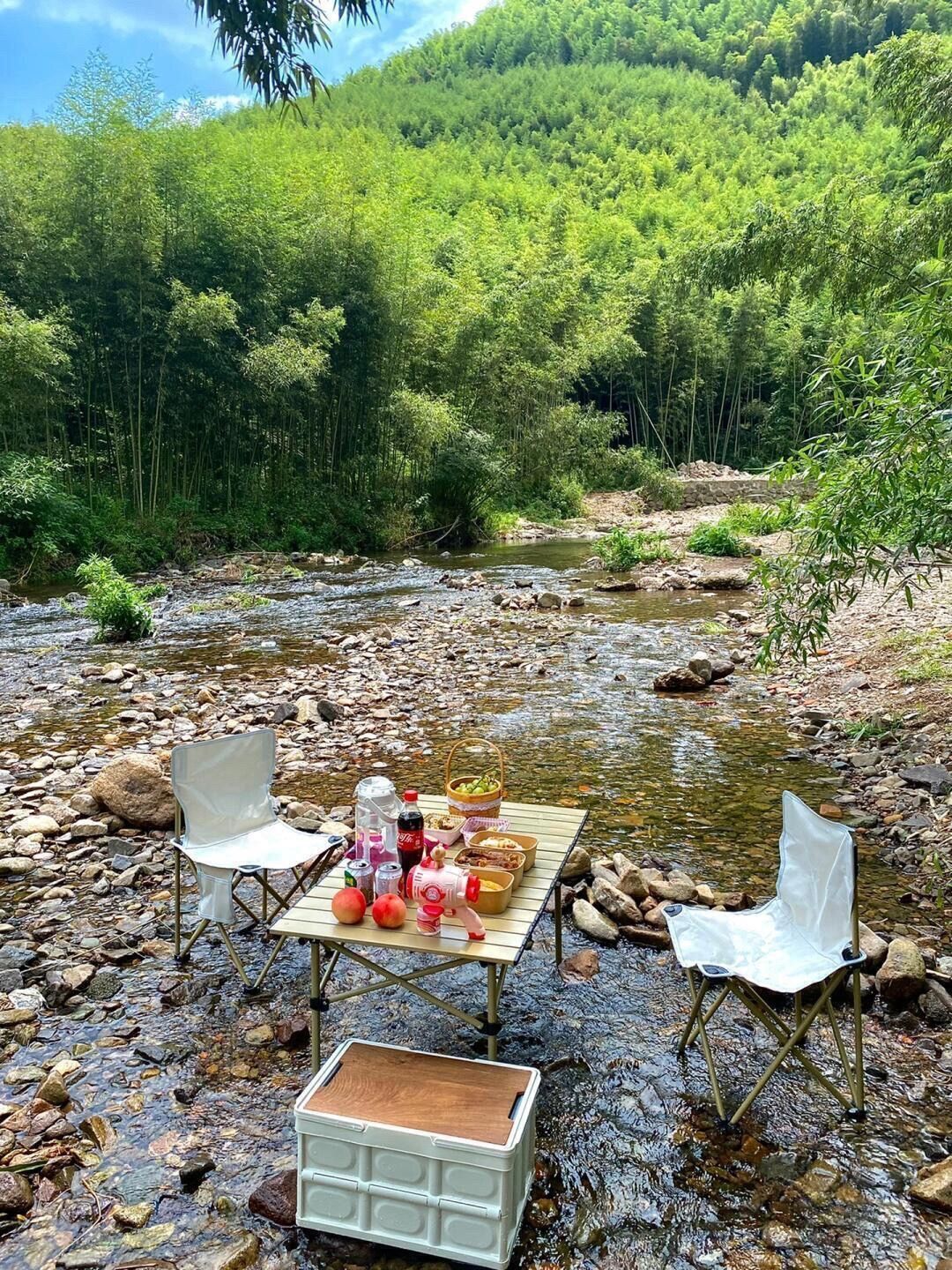 别墅不远处就可以溯溪,惬意下午茶溯溪一桌子美食~好玩又好拍和小姐妹穿上美美哒裙子粗发吧拍照又好看