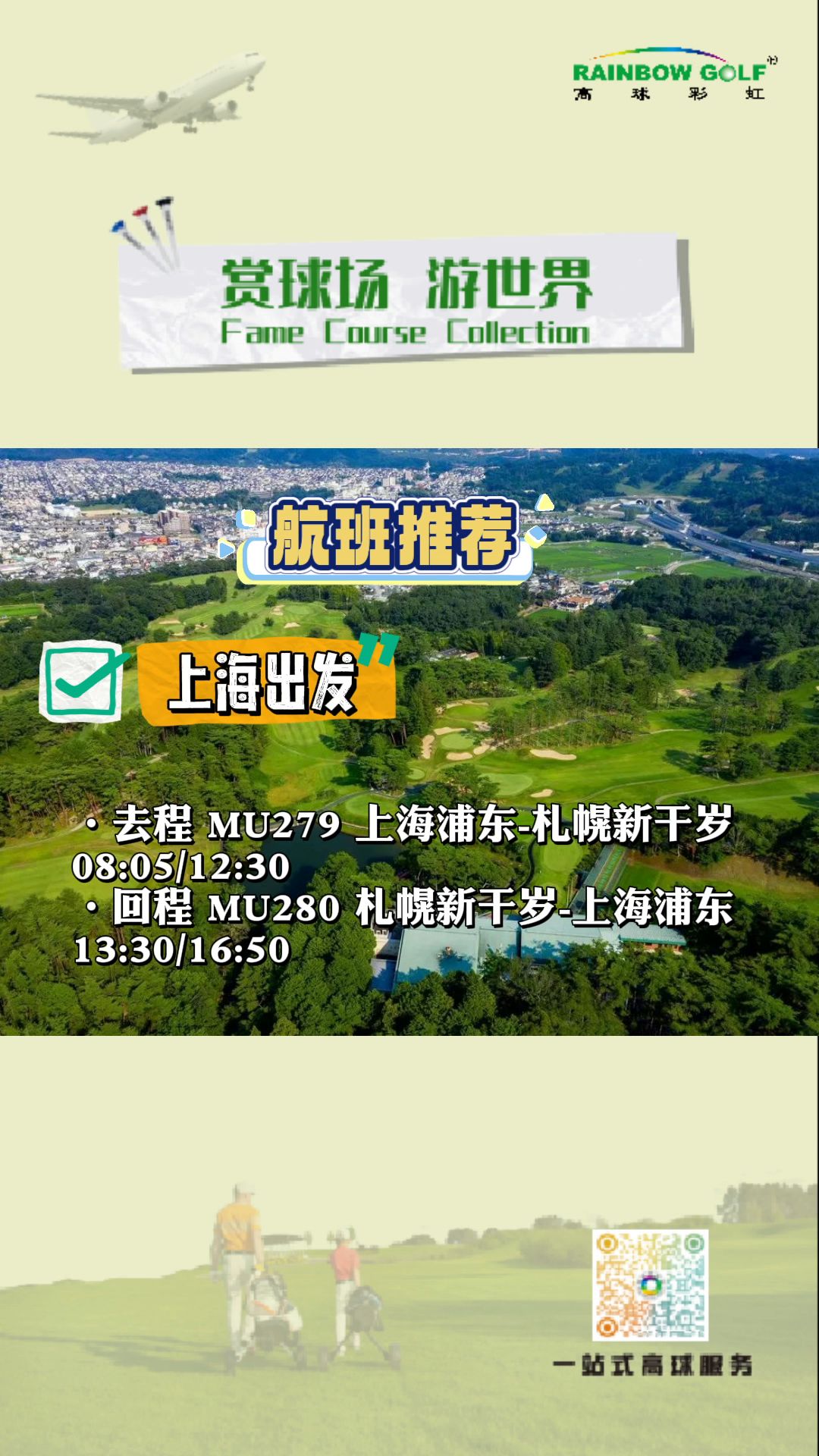 此次行程亮点:北海道平均温度17-26°,清凉挥杆。挥杆日本百佳球场,顶级挥杆体验。全程五星酒店,享受极致服务。全程导游翻译服务及导购服务。抵达札幌新千岁国际机场。