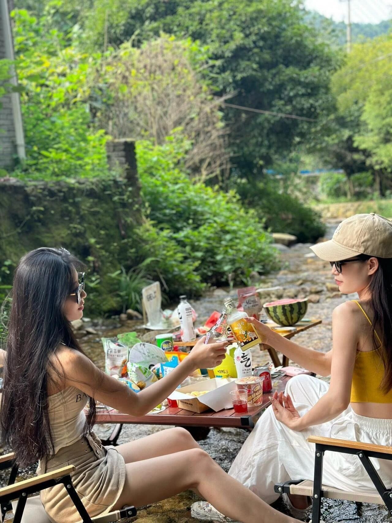 别墅不远处就可以溯溪,惬意下午茶溯溪一桌子美食~好玩又好拍和小姐妹穿上美美哒裙子粗发吧拍照又好看