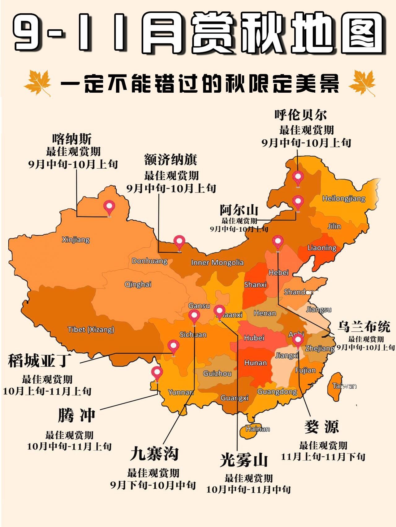 国内赏秋地图看最美的限定秋景||金秋十月,正是赏秋的好时机
