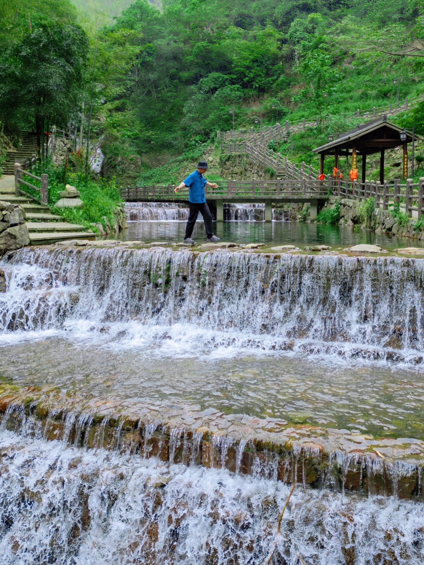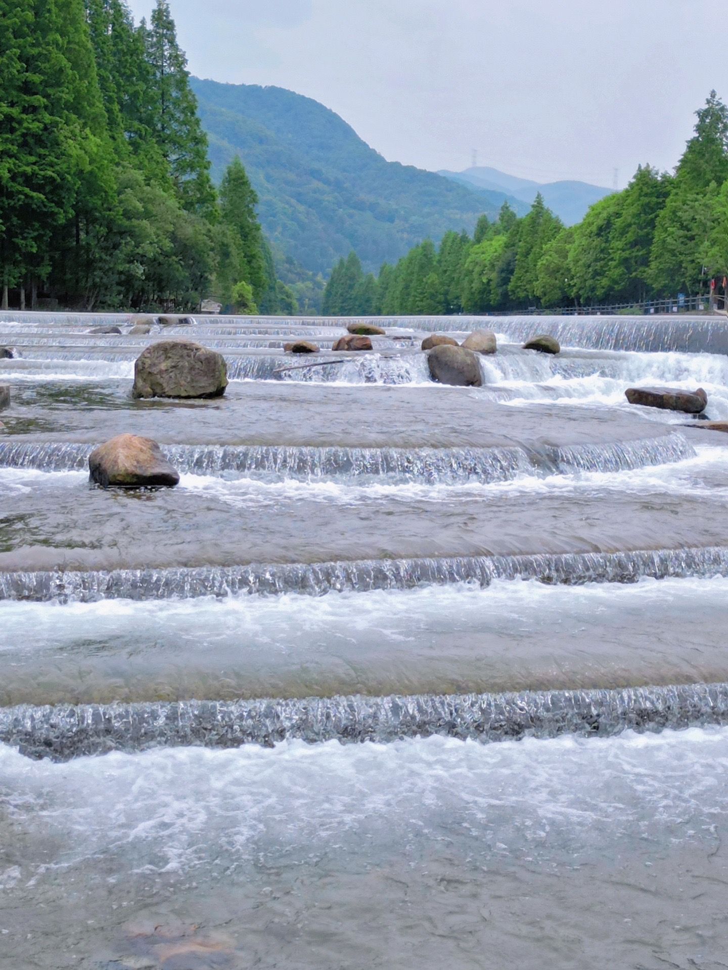 叠式堰坝造型独特,远远看去像鱼鳞一样一层一层,水质非常干净,很适合玩水的一个地方