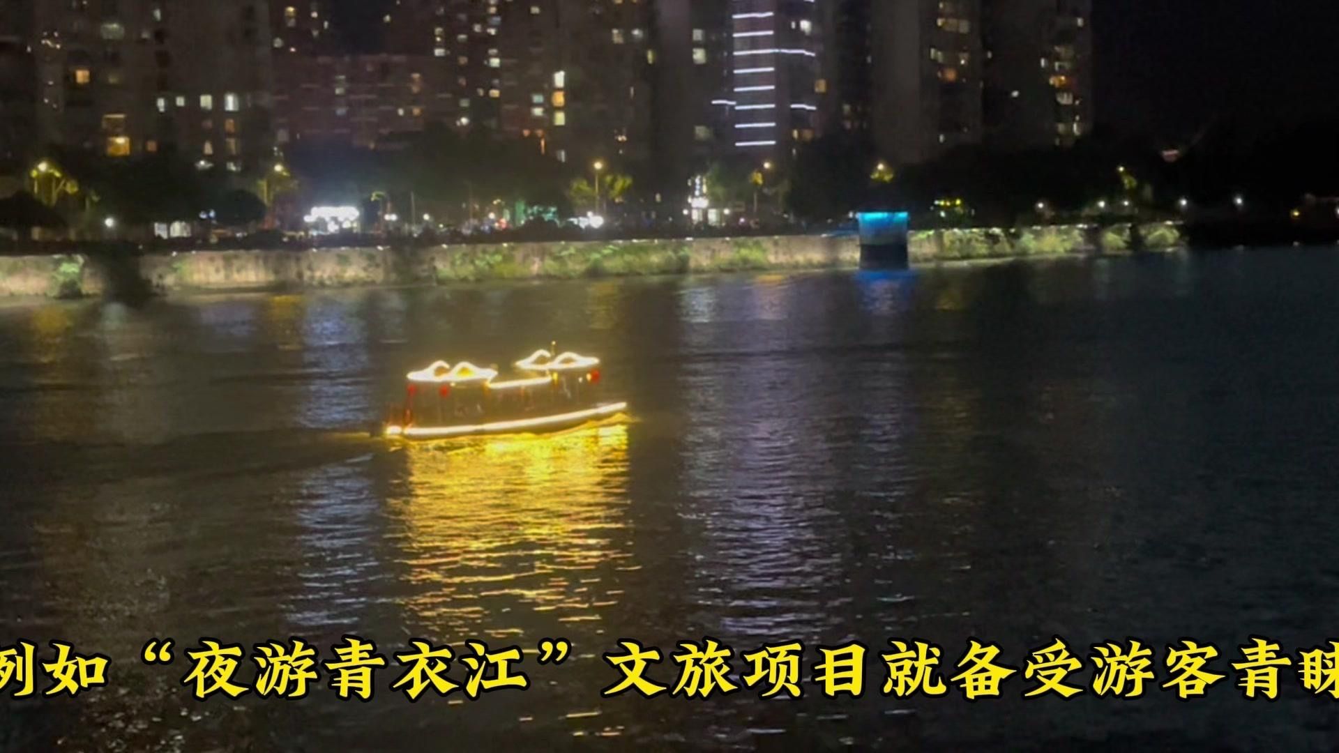 在夜晚乘坐游船畅游青衣江时,两岸的灯光秀与夜景风光交相辉映,美不胜收。