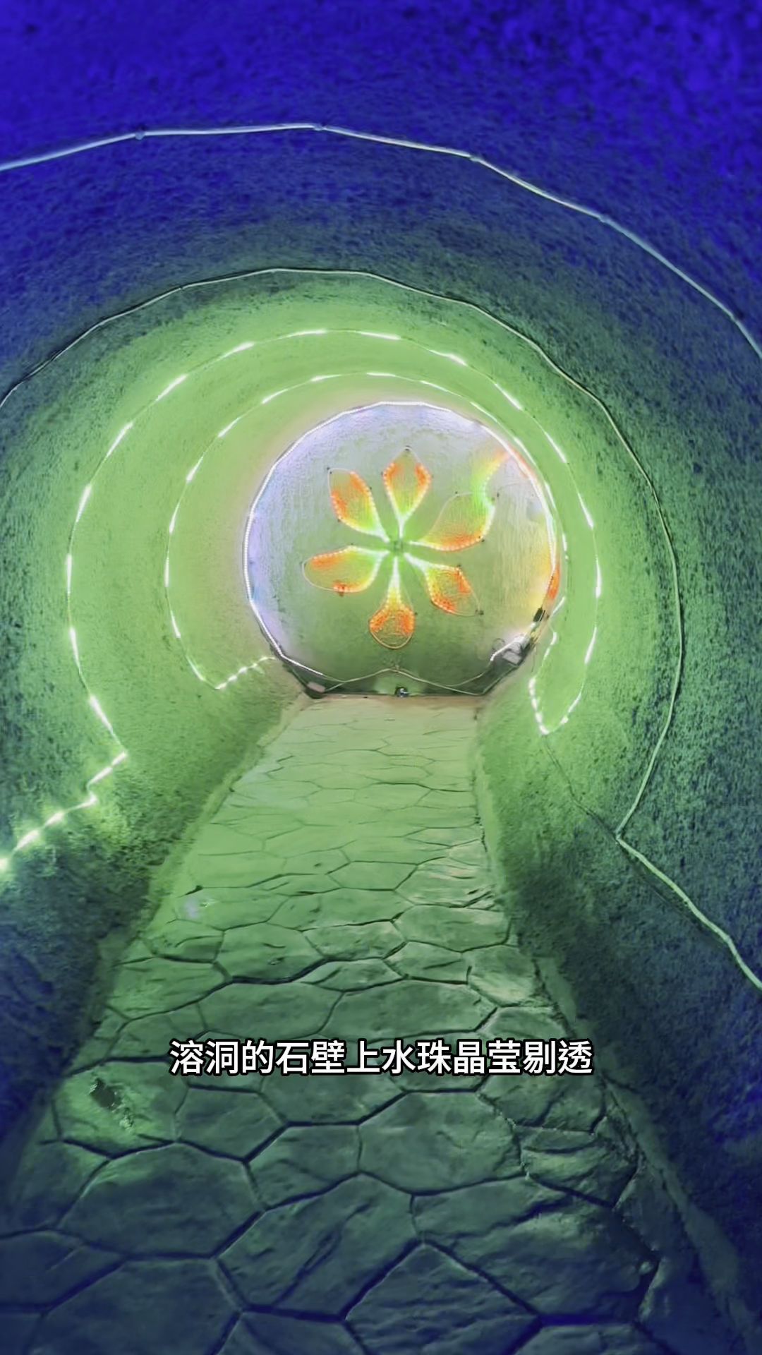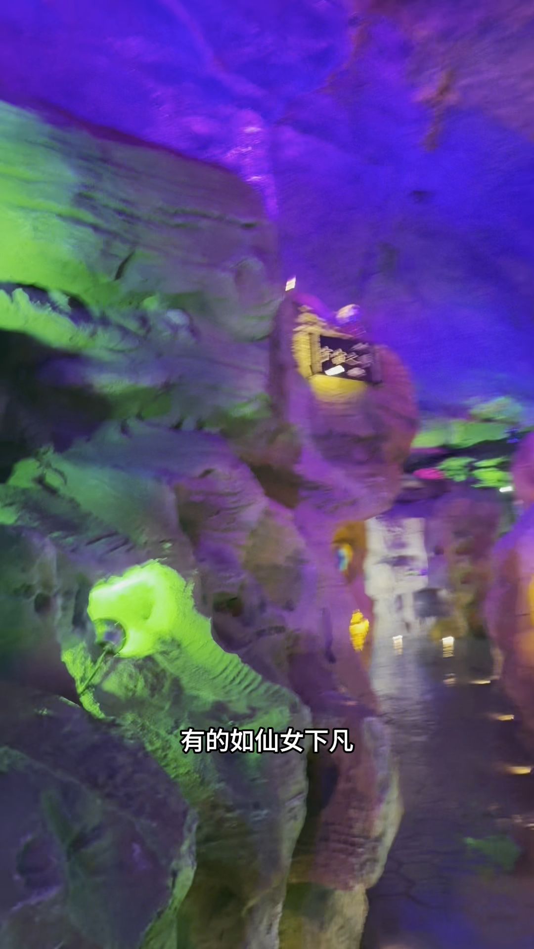 由于溶洞在山体内,所以里面非常凉爽。它内部怪石嶙峋,钟乳石和石笋千姿百态,有的如仙女下凡,亭亭玉立;有的似罗汉打坐,庄严肃穆;有的像蛟龙出海,气势磅礴。溶洞的石壁上水珠晶莹剔透,仿佛串串珍珠镶嵌其中。其中洞中光线昏暗而神秘,色彩斑斓的灯光映照出如梦如幻的景象,令人仿佛置身于一个光怪陆离的神话世界。