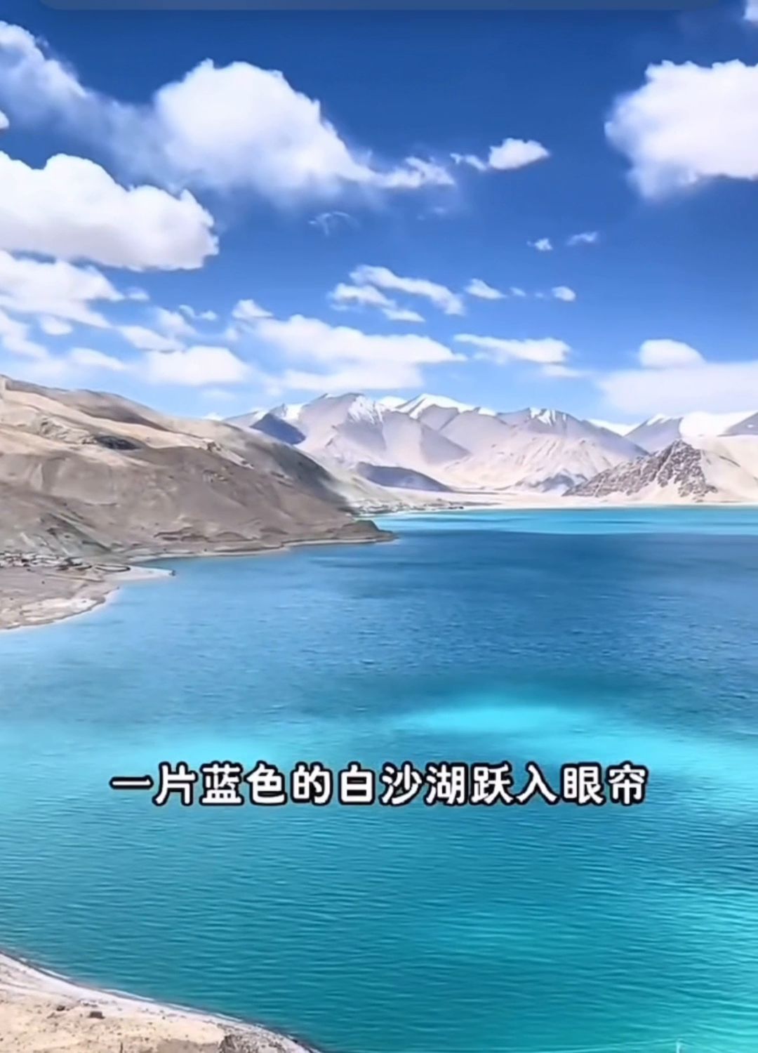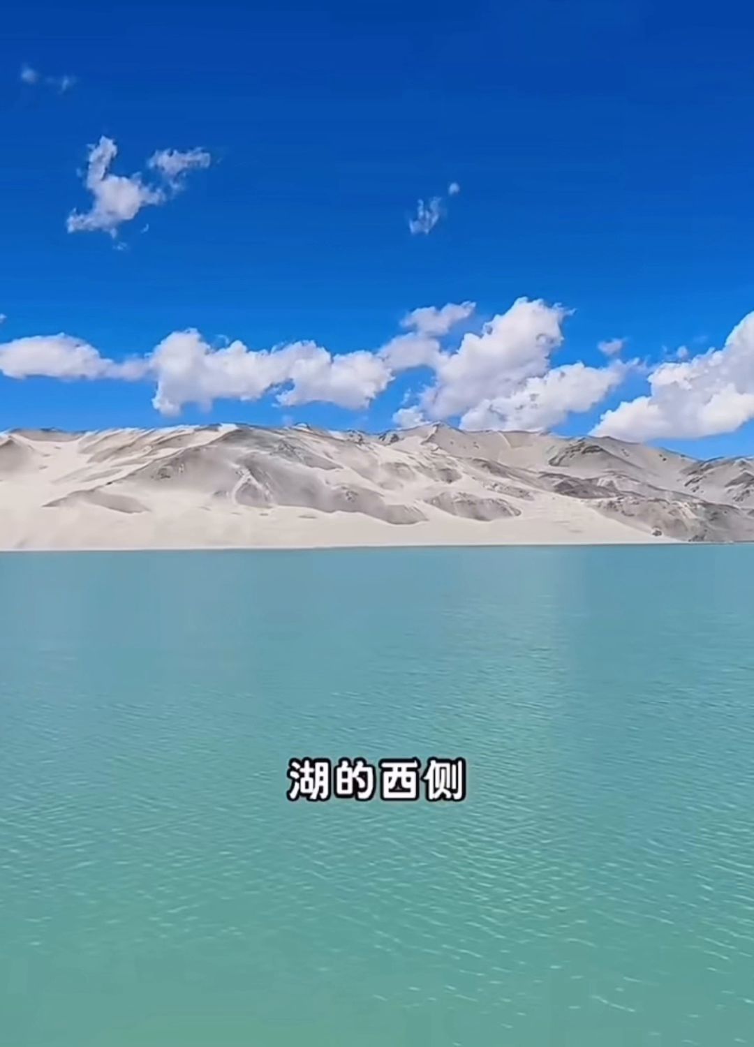 继续向前,红色山体慢慢消失,这表明我们正式踏入了雄伟壮阔的帕米尔高原。登上高原,一片蓝色的白沙湖跃入眼帘,一半是沙漠,一半是湖泊,犹如一颗蓝色的珍宝镶嵌在帕米尔高原之上。湖的西侧由于常年的风吹使得湖泊白沙堆积,所以当地人称其为白沙湖。此处的湖面宛如镜子,水天相连,美得就像一幅画卷在您面前缓缓展开。
