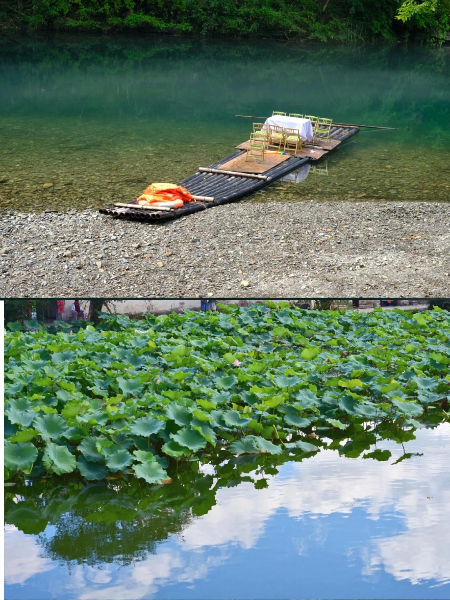 坐竹筏沿溪漂流,家长喝下午茶,孩子们戏水
