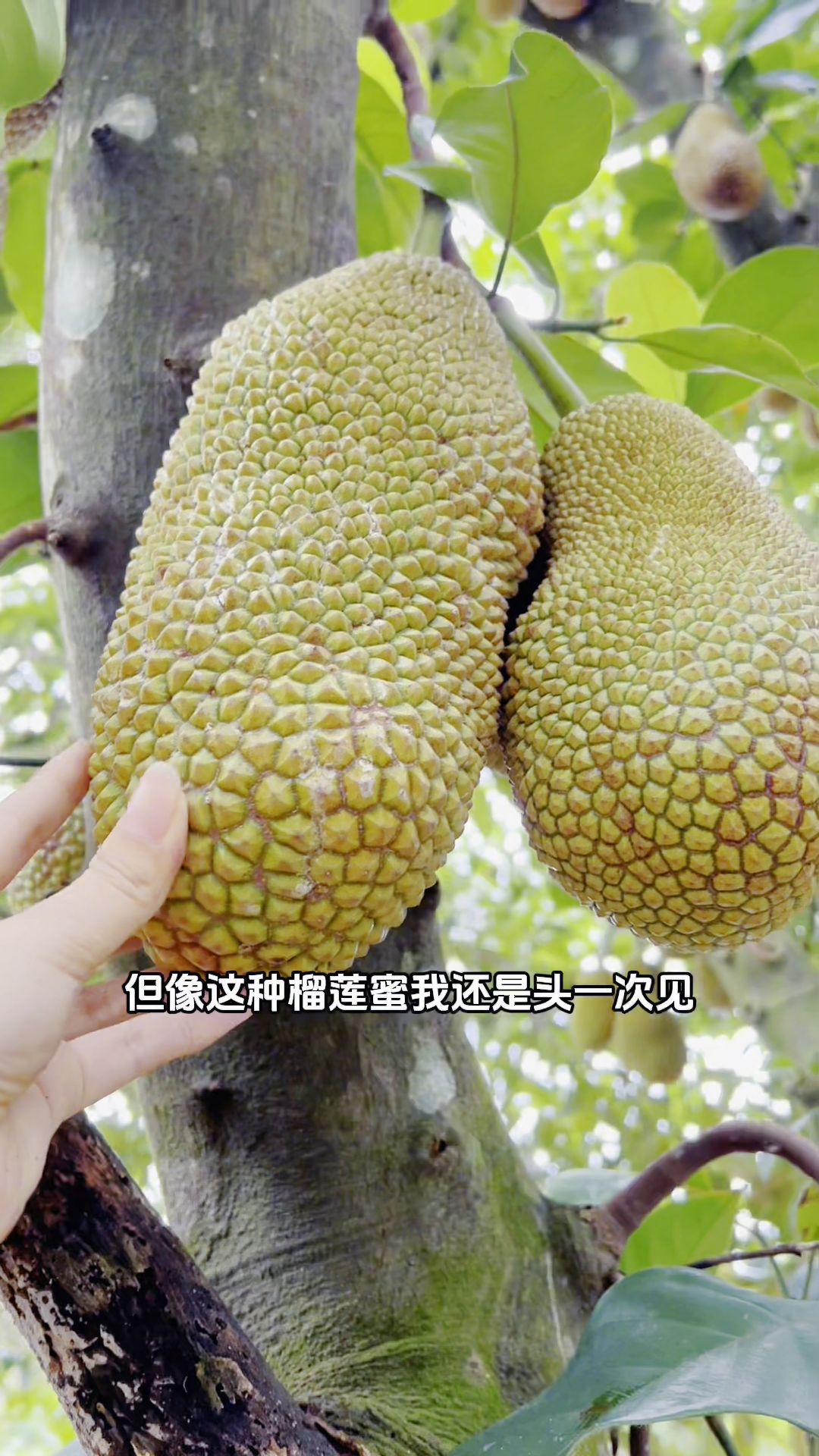 2. 沉积千年的火山岩红壤加上日晒充足,雨量充沛,使得这里的水果更加的饱满个大。但像这种榴莲蜜我还是头一次见,一整棵树都挂满了果,长得特别像菠萝蜜,但比菠萝蜜小很多,是榴莲与菠萝蜜的杂交品种。皮薄肉多,果肉很细腻,吃起来甜而不腻,有种入口即化的感觉。熟透的榴莲蜜不仅闻起来没有榴莲的异味,而且还特别香,吃不惯榴莲的朋友也会特别喜欢吃。