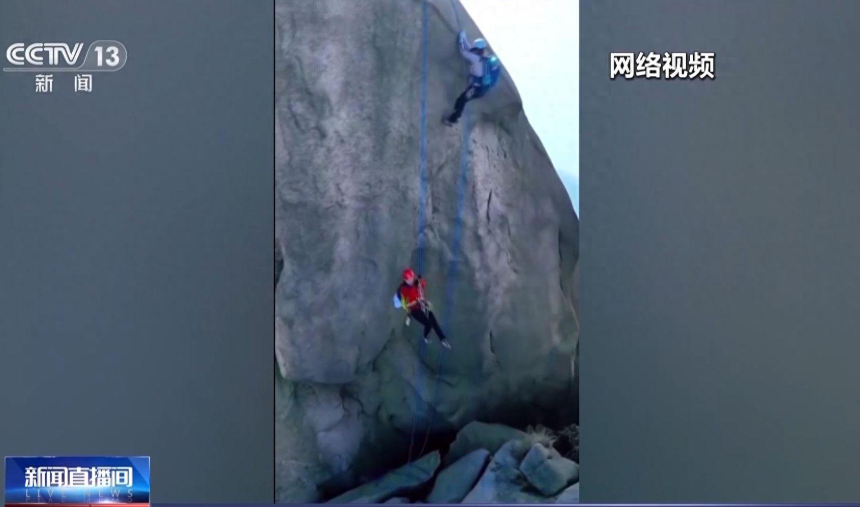随后当地进行了调查,通过无人机拍摄和工作人员最终确认,视频中登山者的野攀地点位于九华山天华峰的对面山体,属于未开发区域,需要借助专业的工具,并经过一定登山训练才可以抵达。通过无人机画面,从远处看,岩体上的攀岩钉依稀可见。