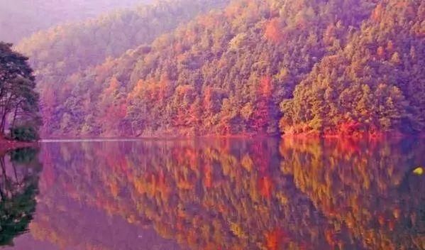 红枫湖湖域四周遍布红枫树,秋冬时节、枫叶似火、湖水轻柔、互衬互耀,如黛的山峰,五颜六色的楼房,鲜艳的亭子,蔚蓝的天空,淡蓝的湖水,好似一幅徐徐展开又无尽头的山水画卷。