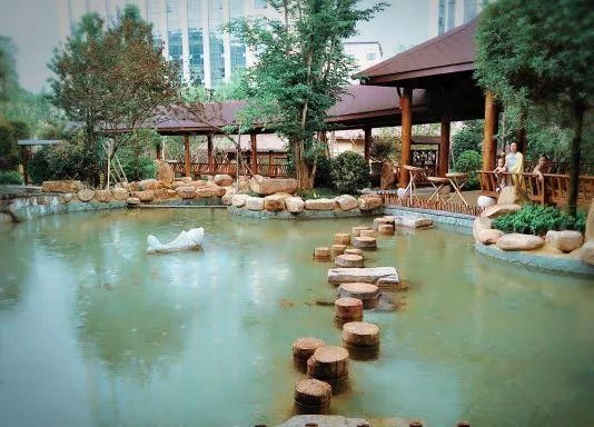 这里有大大小小多种功效特色的温泉池可供选择(蔬果池、酒池、中药池、苗药池,冰泉,雪花池、按摩池、漩涡池,四大美人汤、喷雾池、椰奶池、咖啡池)。