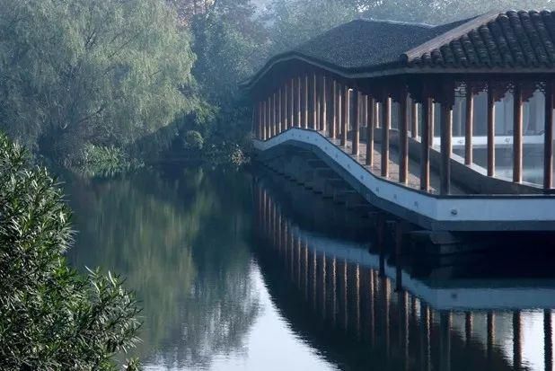 没有游人如织的喧闹闹,却又移步换景,随处惊喜。霁虹桥,犹如长虹卧波,划破水面,廊腰缦回,尽显婀娜。