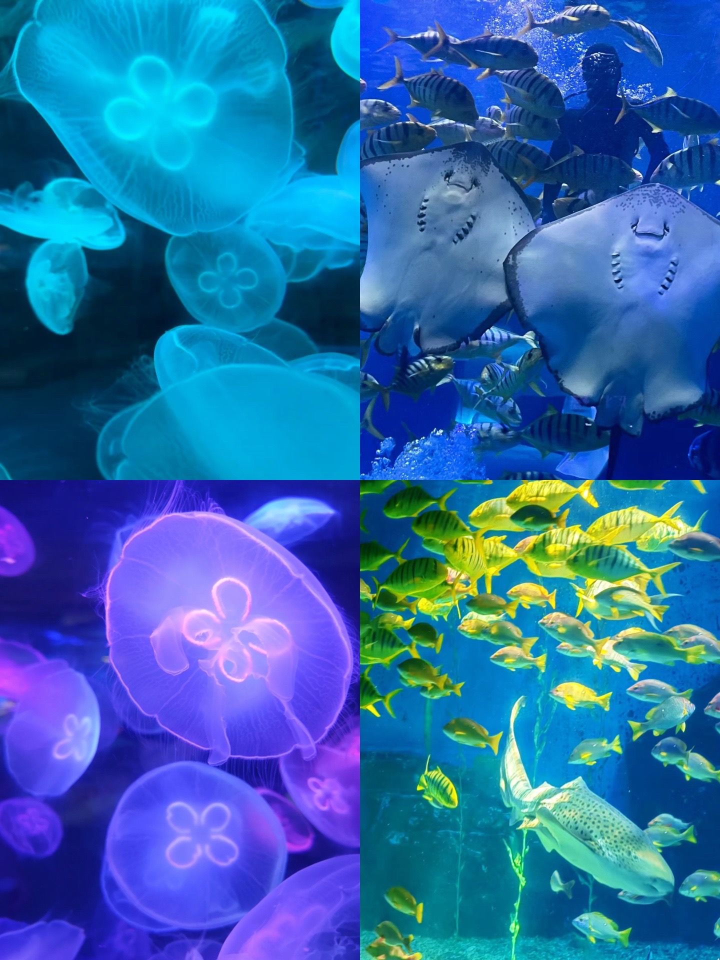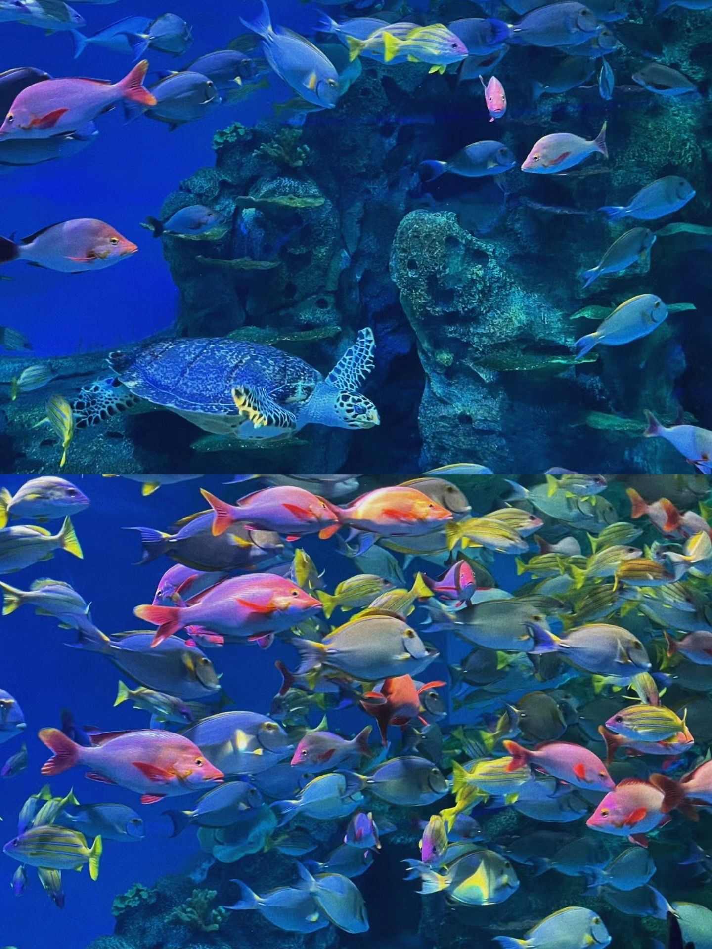 游玩线路:极地世界(海豹海狮企鹅)二楼标本展览水下剧场(没有表演时也可以拍照打卡)海底隧道(很出片,人多)鲨鱼湾海盗船水母馆海龟馆(可以喂)秘境餐厅热带雨林白鲸门口。(这是大致的线路,建议根据个人爱好选择观看调整)
